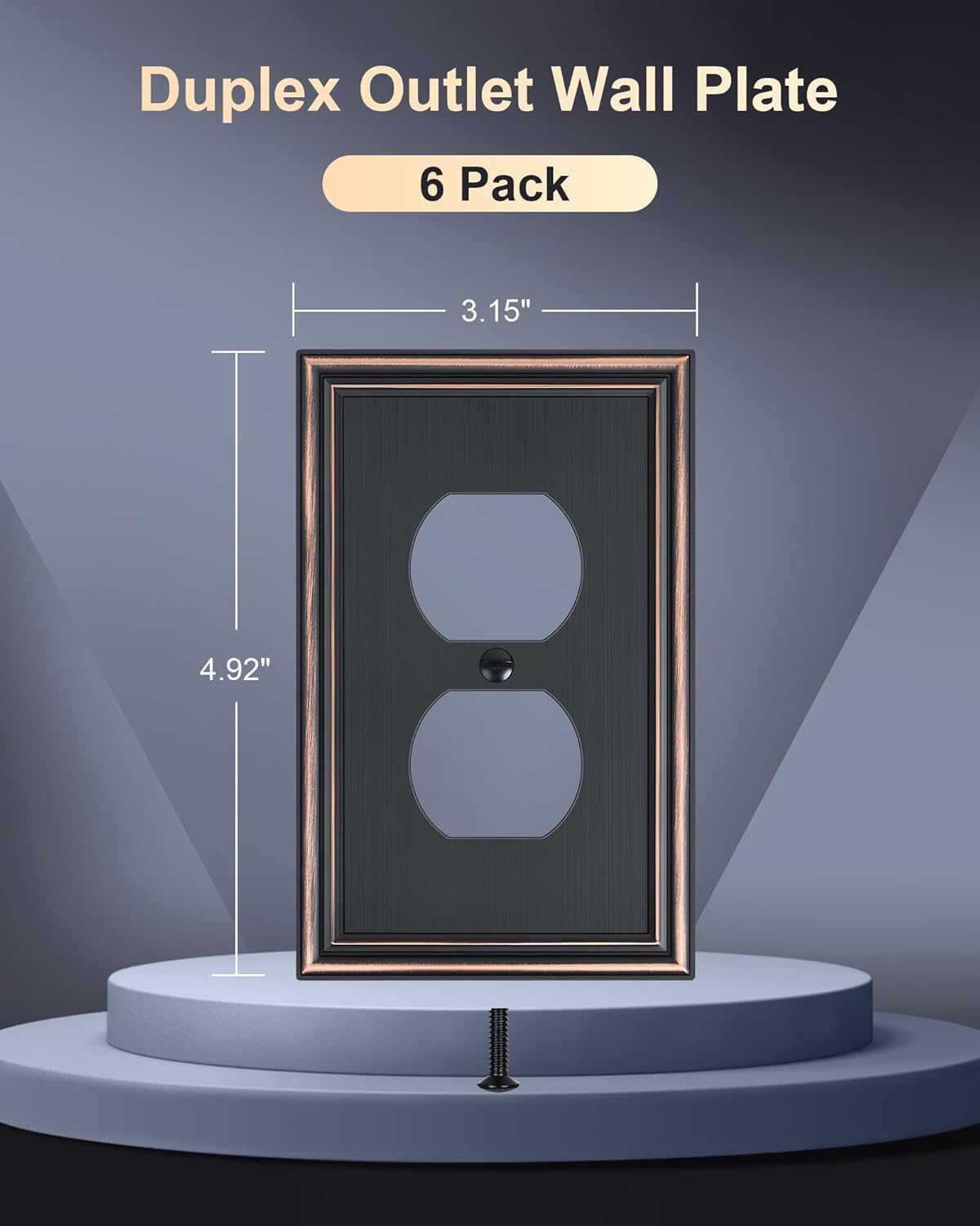 - Specification - Pack of 6 duplex metal wall plates, size at 3.15''W*4.92''H. Easy replacement of any wall plate with the same configuration, making it a convenient choice for remodeling or upgrading your home. Backed by a one-year warranty to ensure your peace of mind and complete satisfaction.