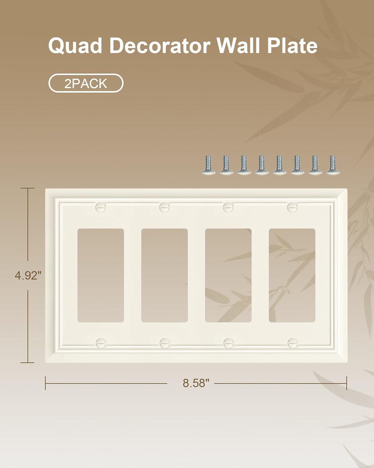 - Specification - Pack of 2 quad decorator bamboo wall plates, size at 8.58"W x 4.92"H. Easy replacement of any wall plate with the same configuration. Backed by a one-year warranty to ensure your peace of mind and complete satisfaction.