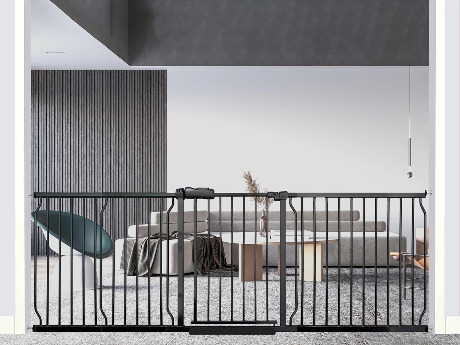 Heavy Duty Baby & Dog Safety Gate, Extra Wide 85.8-90.5 Inch,Black Metal, Pressure Mounted No Drilling Pet Gate for Large Openings