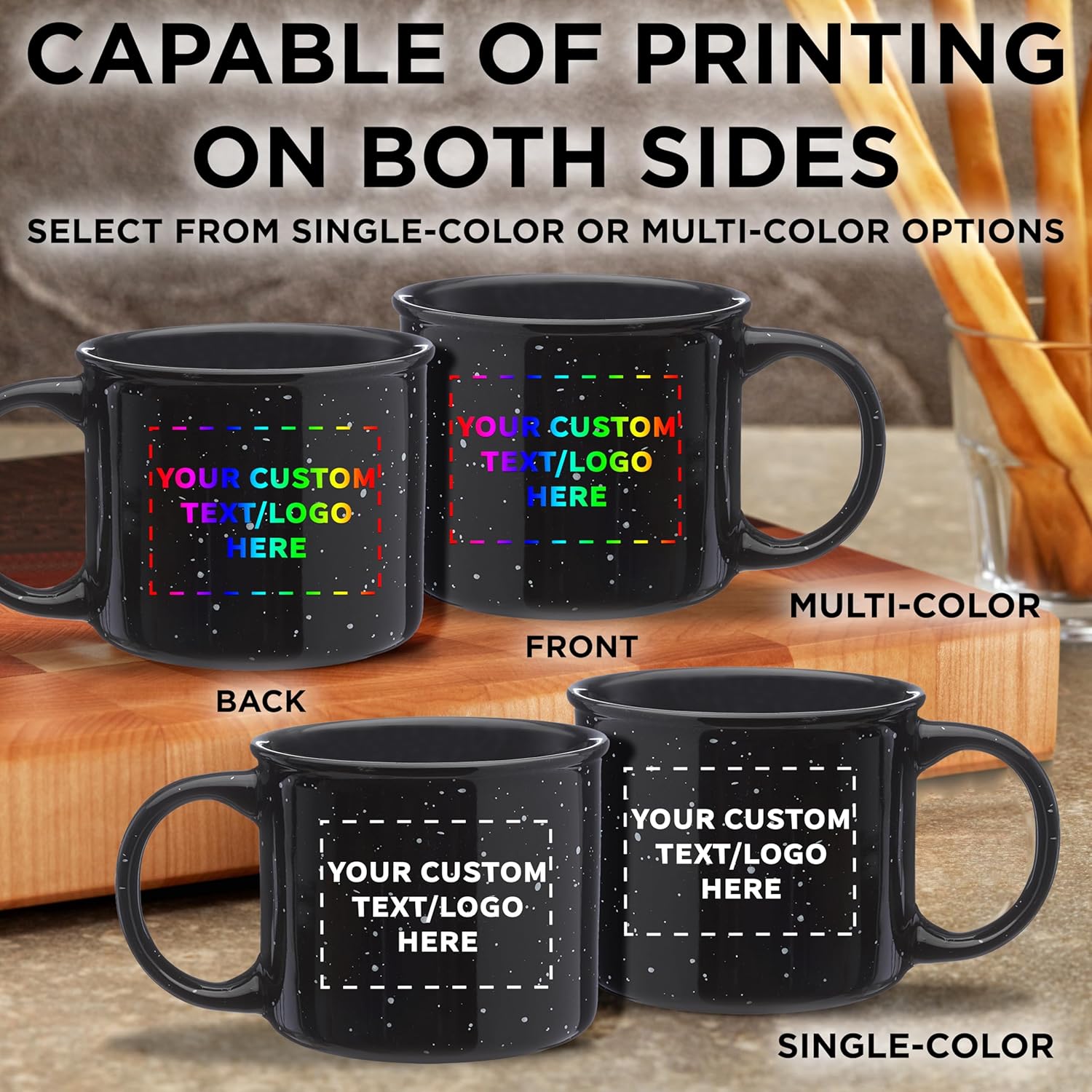 - CUSTOM PRINTED - Easy to add your family name, logo, or favorite text if you want to personalize these great looking mugs. Available in a variety of colors to choose from.