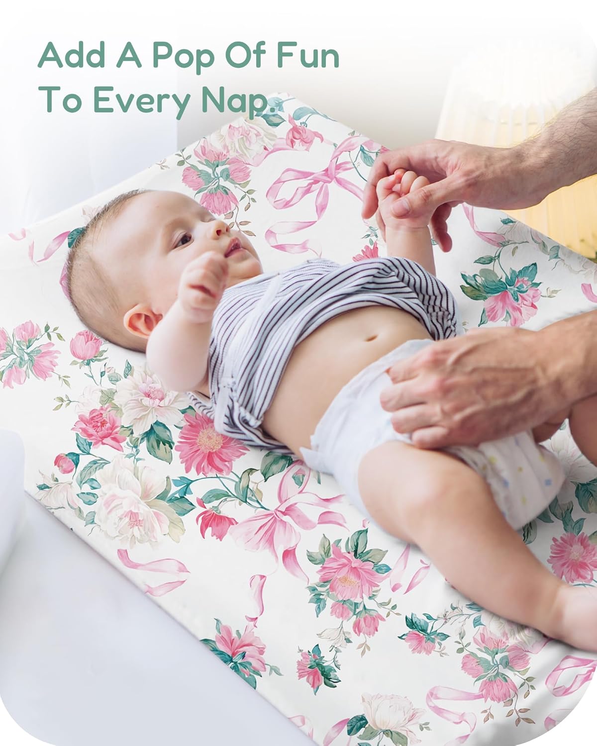 - Secure 360-Degree Elastic Fit: Designed with fully encased 360-degree elastic, this baby changing pad cover fits snugly around your changing pad, preventing slipping or shifting during diaper changes, providing a stable and secure surface for your baby.