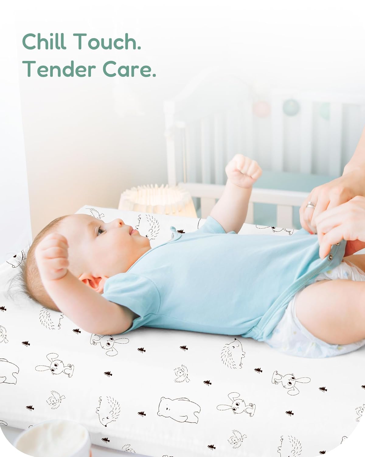 - 2-Color Design: This TotChill changing pad cover set features two adorable colors, perfect for both boys and girls. Designed to fit standard changing pads (32” x 16” x 5”), it adds a cute touch to your baby’s space.