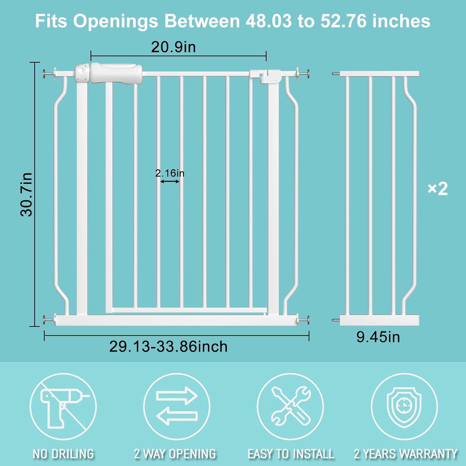 WAOWAO Baby Gate 48.03-52.72" Extra Wide Pressure Mounted Walk Through Swing Auto Close Safety White Metal Toddler Kids Child Dog Pet Puppy for Stairs,Doorways,Kitchen