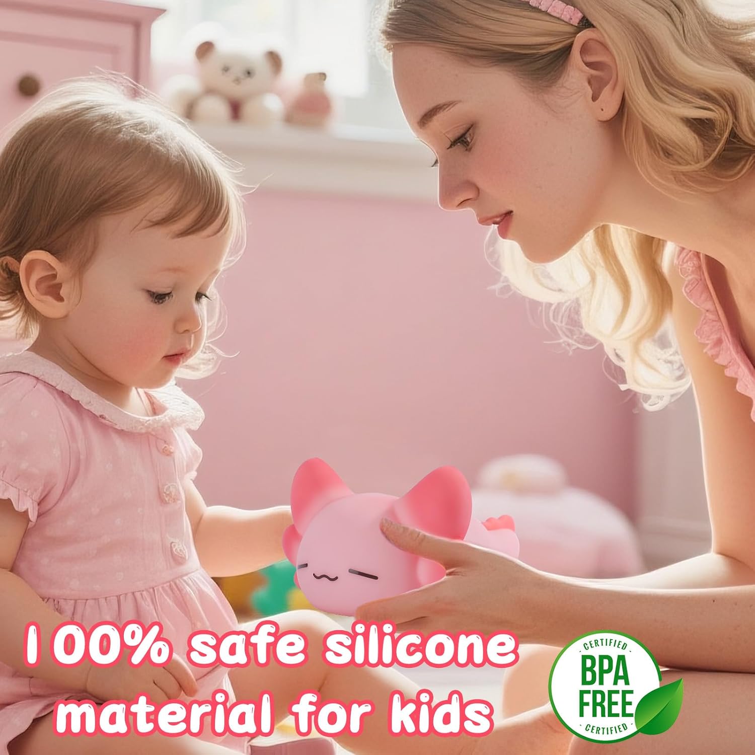 - 【 Safe Materials 】 The Axolotl night light is made of non-toxic baby safety silicone and does not contain bisphenol A. The soft silicone can be freely kneaded and quickly rebounded. The silicone shell is thickened to prevent easy breakage or damage. It can immediately relieve your stress. This is a baby night light and a stress relieving toy.
