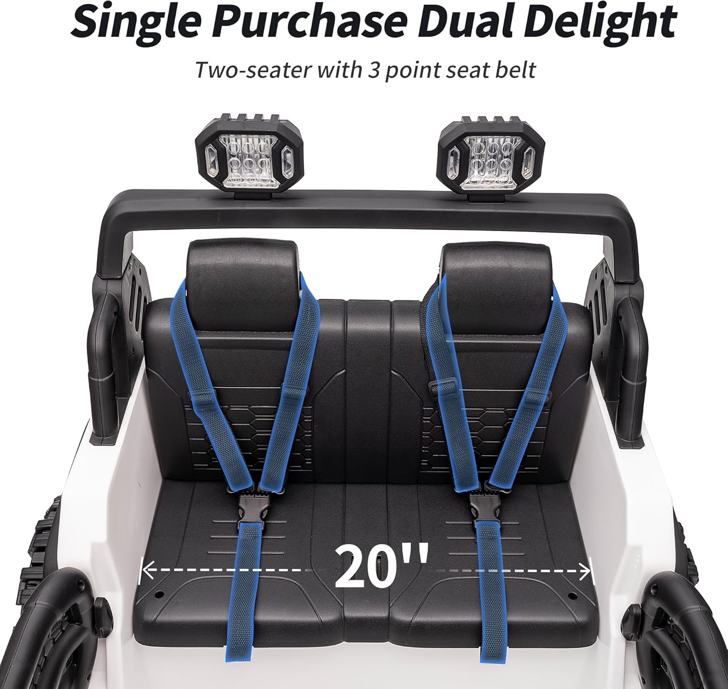 - 20'' 2 SEATER: The kids car to drive 2 seater with a three-point safety belt accommodates one kid(3-8 years) or two(up to 8 years combined), providing a safe and comfortable riding experience in the 24V kids ride-on truck.