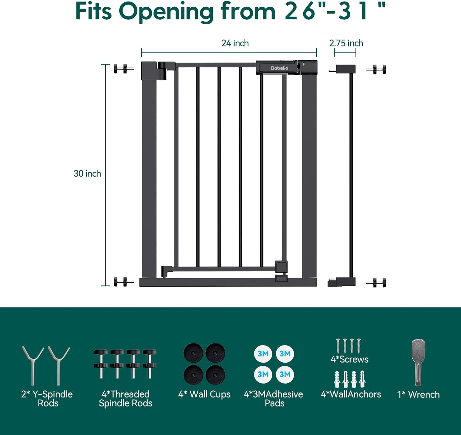 BABELIO Baby Gate for Doorways and Stairs, 26-31" Pet Gate with Wide Walk Thru Door and Lock Indicator, No Drill Pressure Mounted Safety Gate with Double Lock and Self-Closing, Black