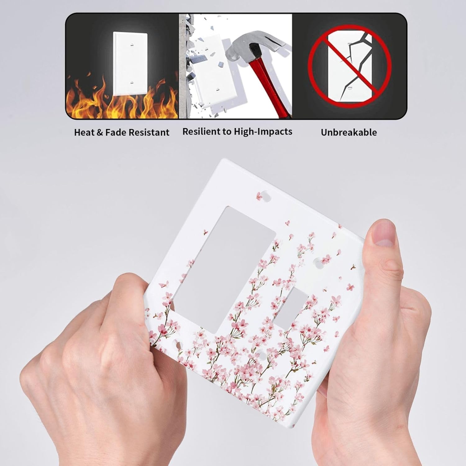 Outlet Covers Sakura Plant Floral Pink Flowers 1 Toggle 1 Rocker Combination Decorative Wall Plate Electrical Switch Plates Light Switch Cover Plate For Bed Room Living Room Decor