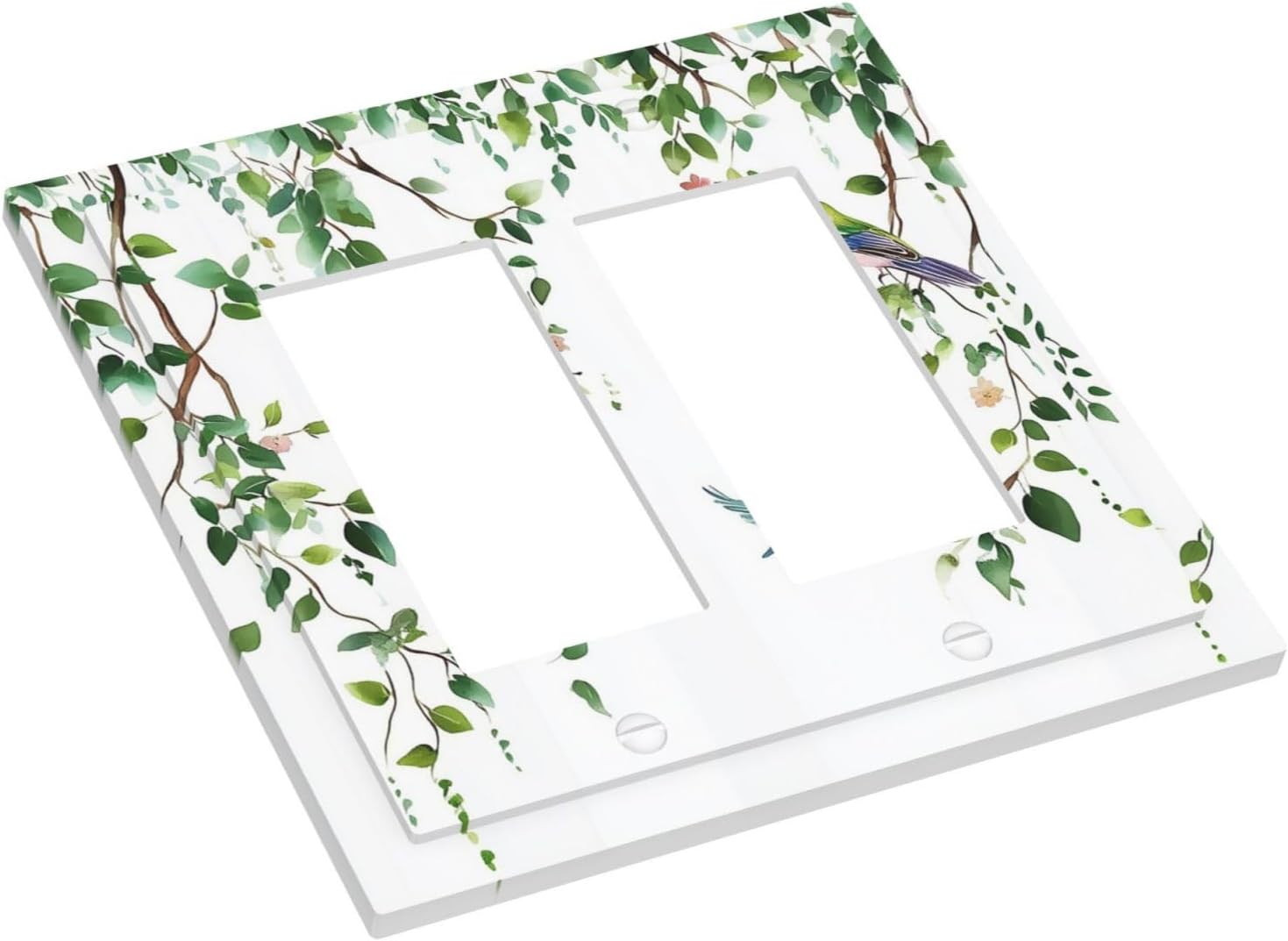 Decorative Outlet Covers Green Leaves Bird Eucalyptus Sage Plant 2 Gang Double Gfci Rocker Electrical Wall Panels Light Switch Cover Plate For Bed Room Living Room Decor