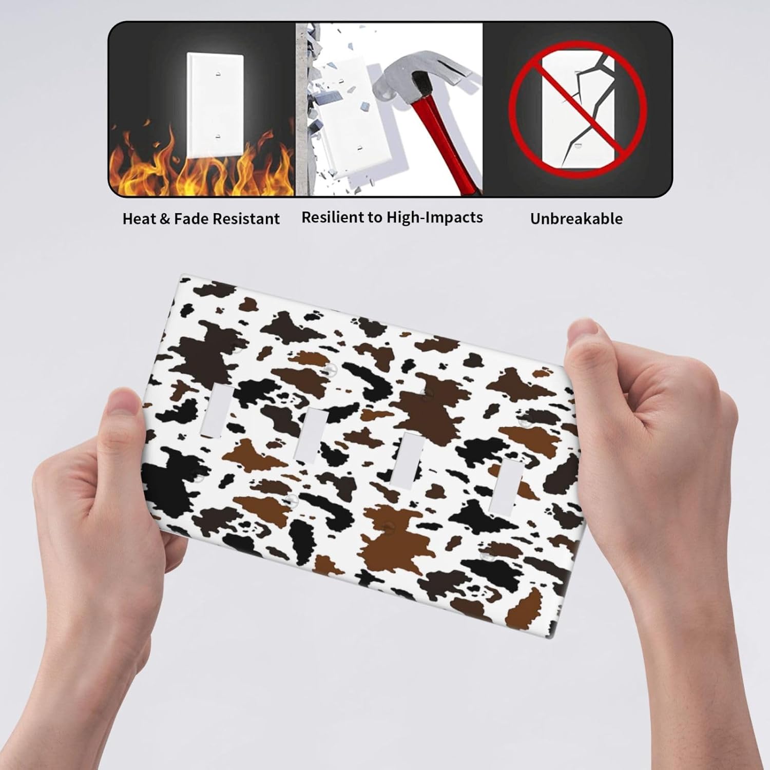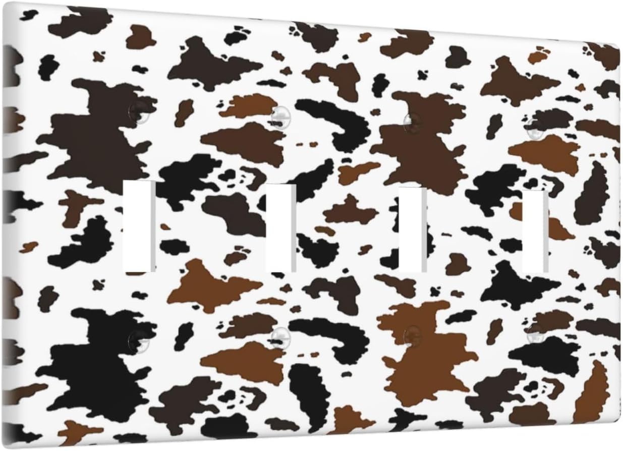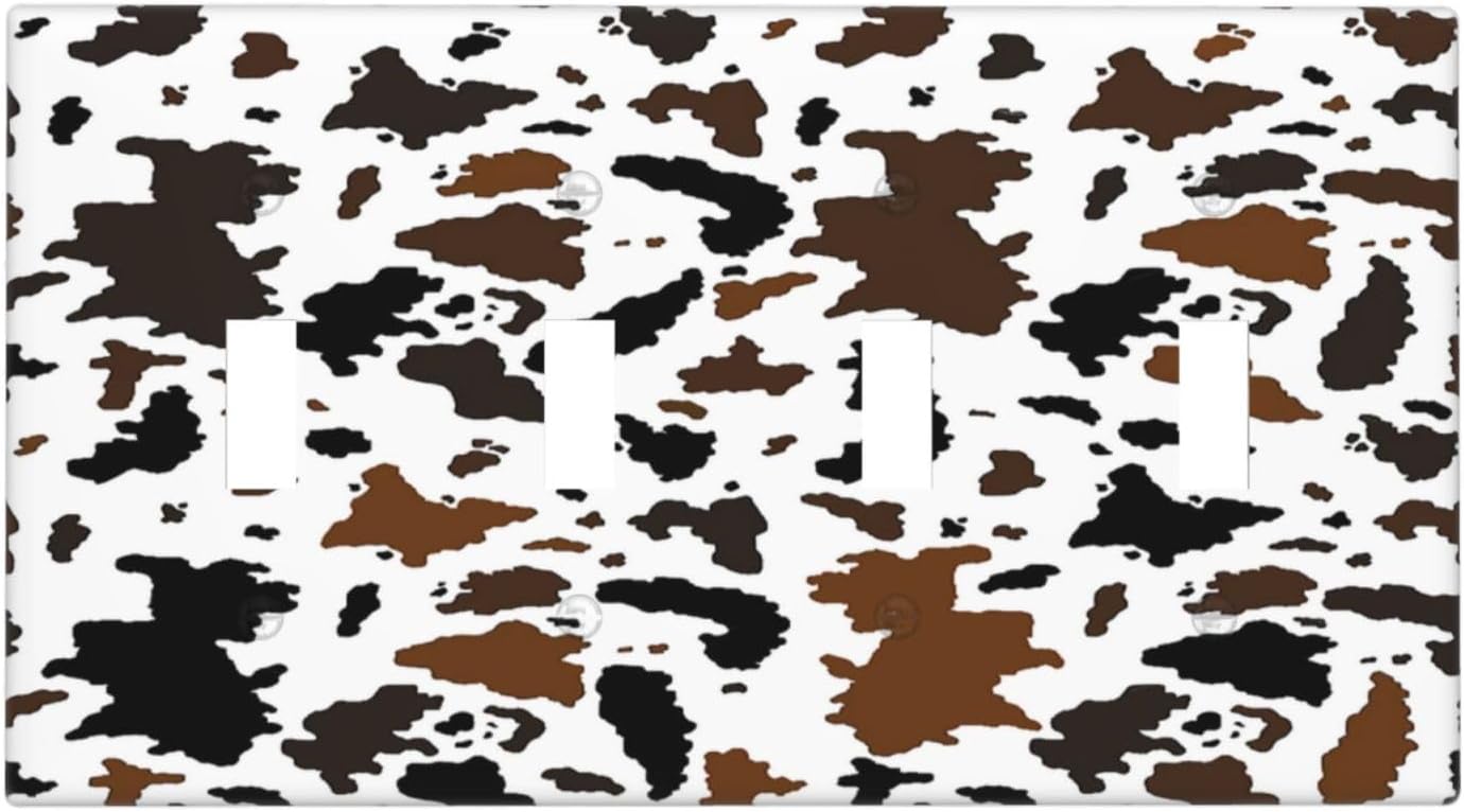 Light Switch Covers Rustic Cowhide Highland Cow Milk Cow Quad Toggle Electrical Faceplate 4 Gang Wall Plate Decorative Switch Plates For Farmhouse Home Decor