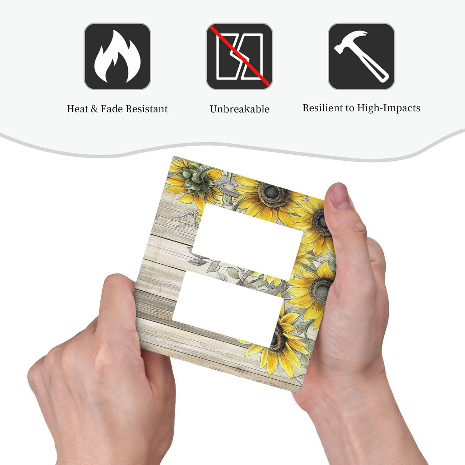 Decorative Outlet Covers Floral Sunflower Rustic Flower Vintage Wood 2 Gang Double Gfci Rocker Electrical Wall Panels Light Switch Cover Plate For Farmhouse Cabin Decor