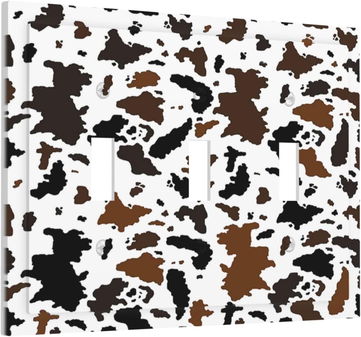 Decorative Switch Plates Rustic Cowhide Highland Cow Milk Cow 3 Gang Wall Plate Triple Toggle Light Switch Cover Faceplate Electrical Wall Panels For Farmhouse Home Decor