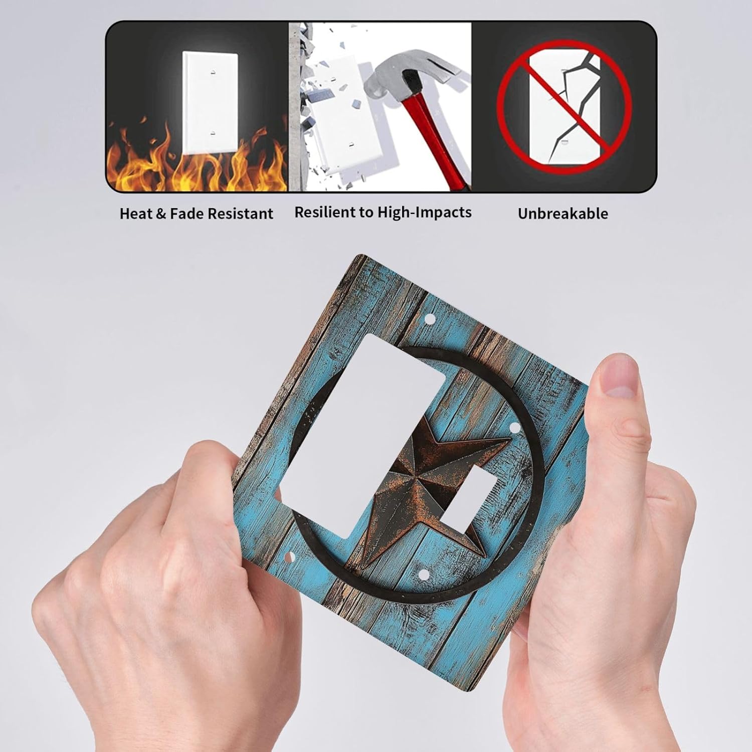 Outlet Covers Rustic Wood Country Barn Texas Star On Teal 1 Toggle 1 Rocker Combination Decorative Wall Plate Electrical Switch Plates Light Switch Cover Plate For Farmhouse Cabin Decor