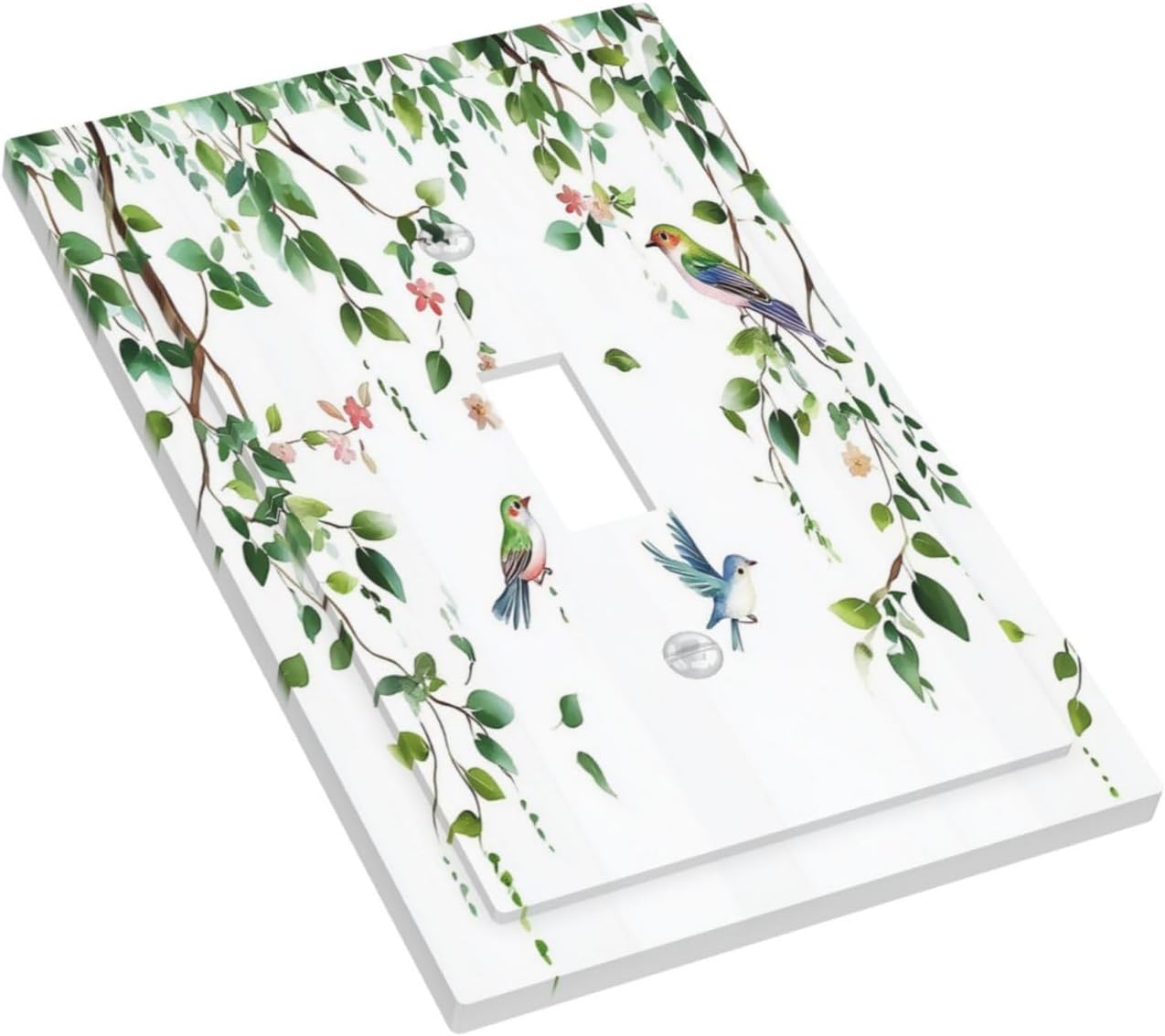 Decorative Light Switch Cover Green Leaves Bird Eucalyptus Sage Plant 1 Gang Single Toggle Device Electrical Faceplate Switchplates Decorator Outlet Wall Plate For Bed Room Living Room