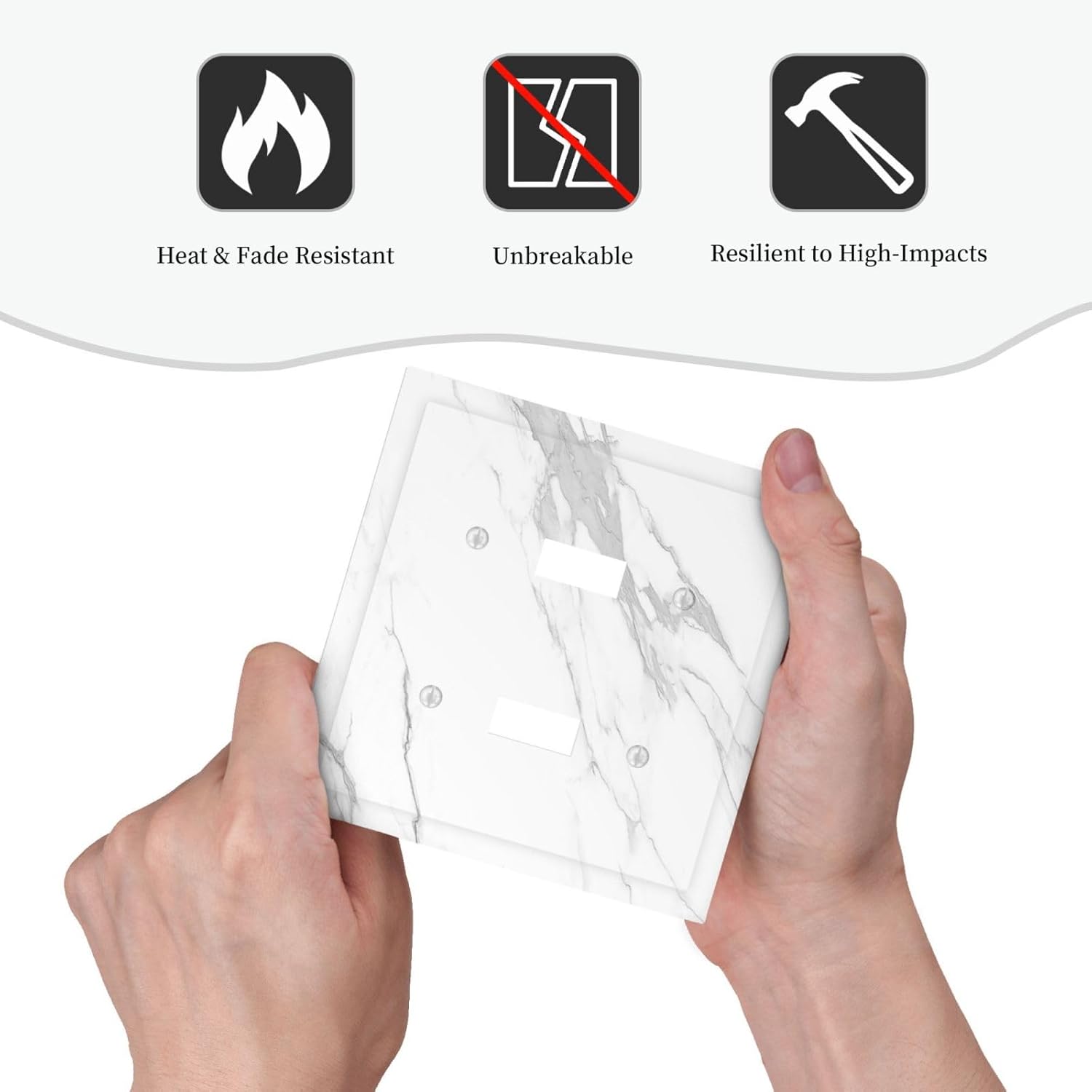 Decorative Switch Plates Modern White Gray Marble 2 Gang Double Toggle Outlet Light Switch Cover Wall Plate Electrical Faceplate for living Room Bathroom Decor