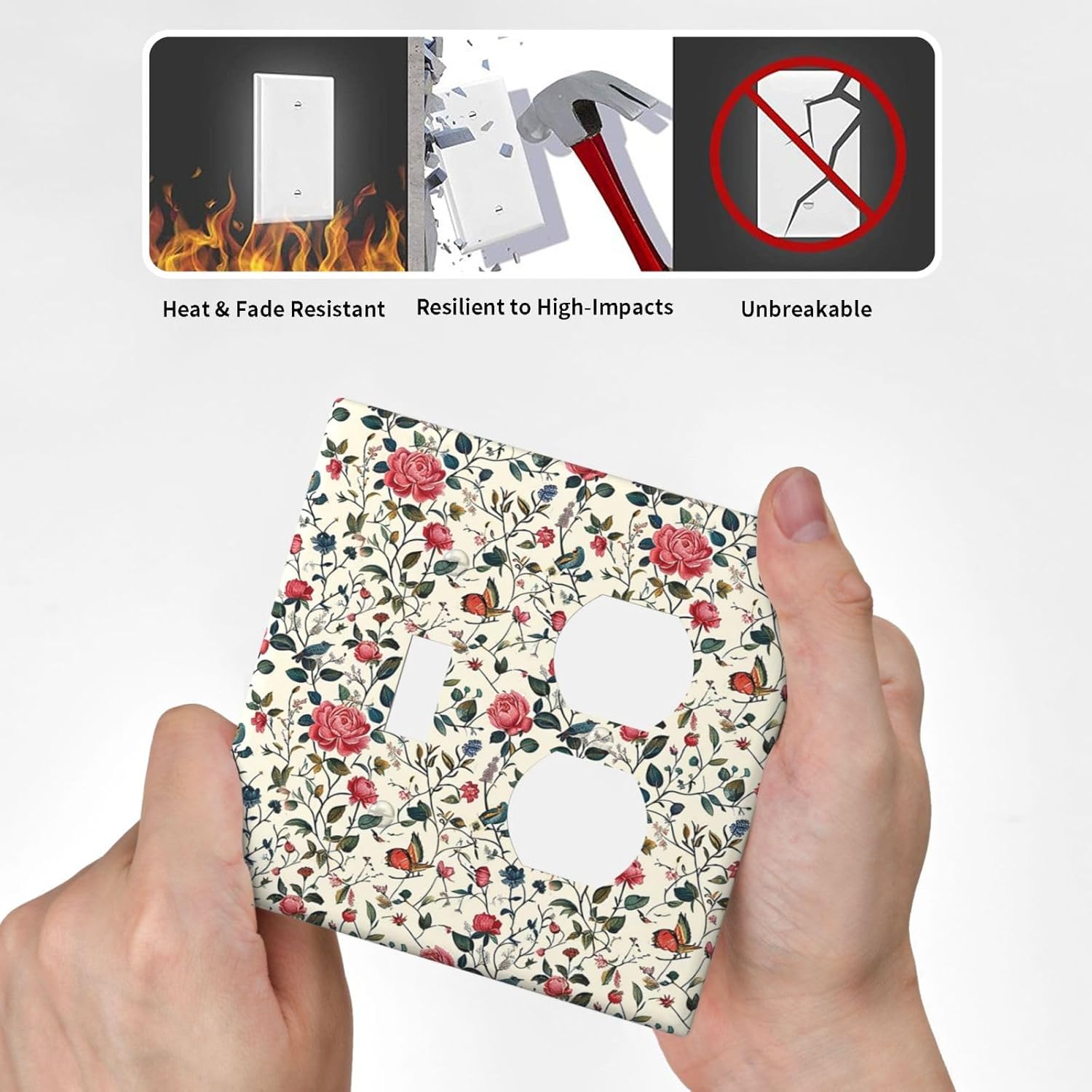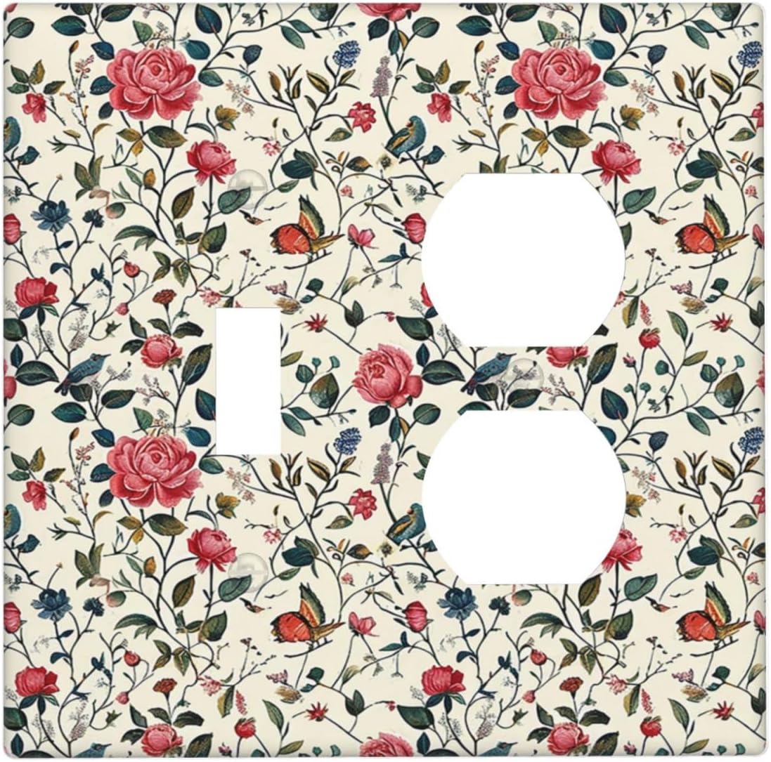 Wallplates Vintage Flowers Rose Leaf Bird Butterfly 1 Toggle 1 Duplex Switch Plate Electrical GFCI Faceplate Decorative Light Switch Covers for Bedroom living Room Decor