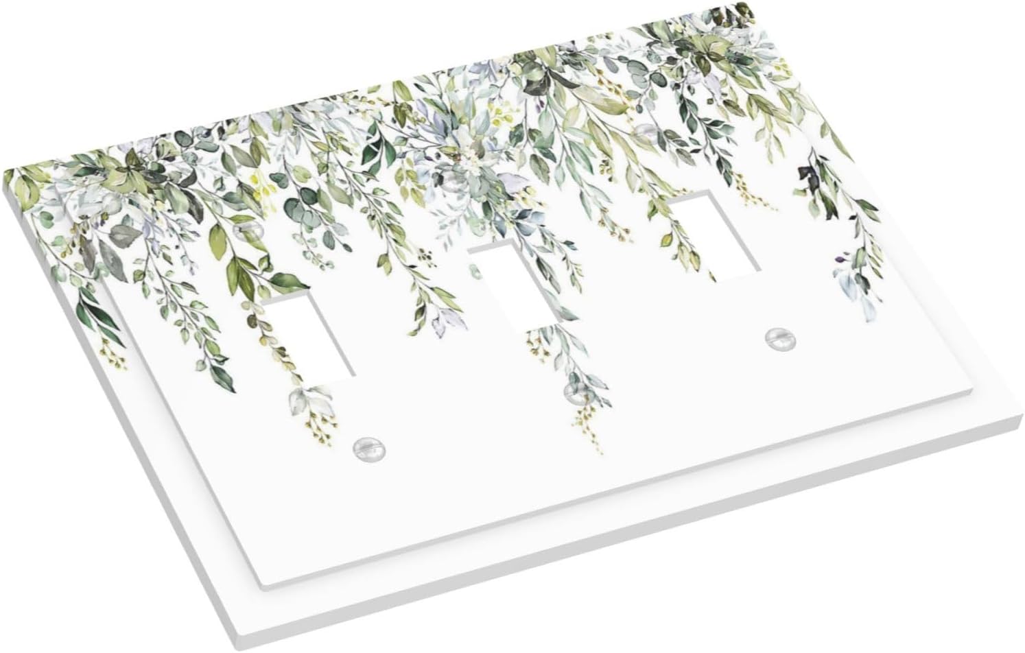 Decorative Switch Plates Boho Farmhouse Flower Leaf Sage Green 3 Gang Wall Plate Triple Toggle Light Switch Cover Faceplate Electrical Wall Panels for Bedroom Cabin Decor