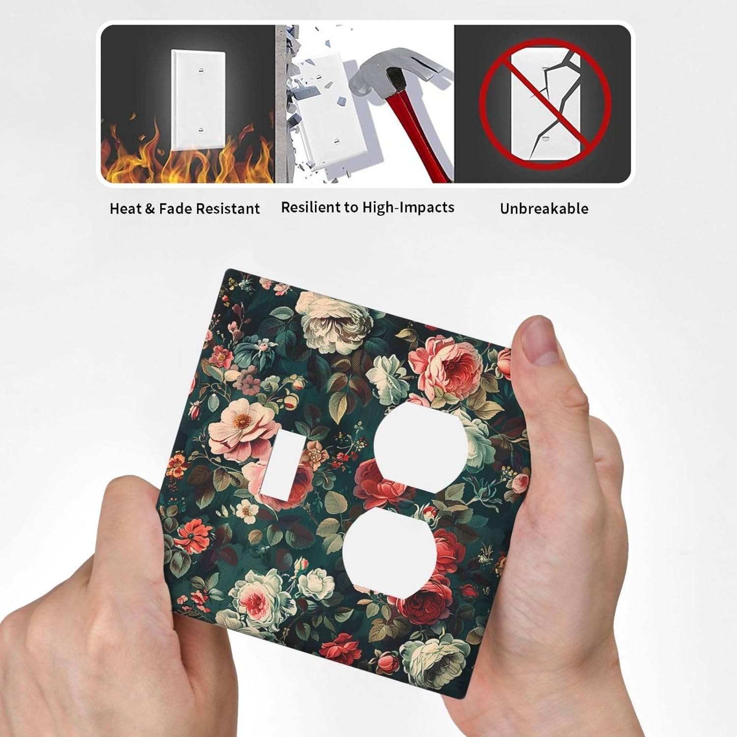 Wallplates Baroque Vintage Peony Flower Floral 1 Toggle 1 Duplex Switch Plate Electrical GFCI Faceplate Decorative Light Switch Covers for Bedroom Farmhouse Decor