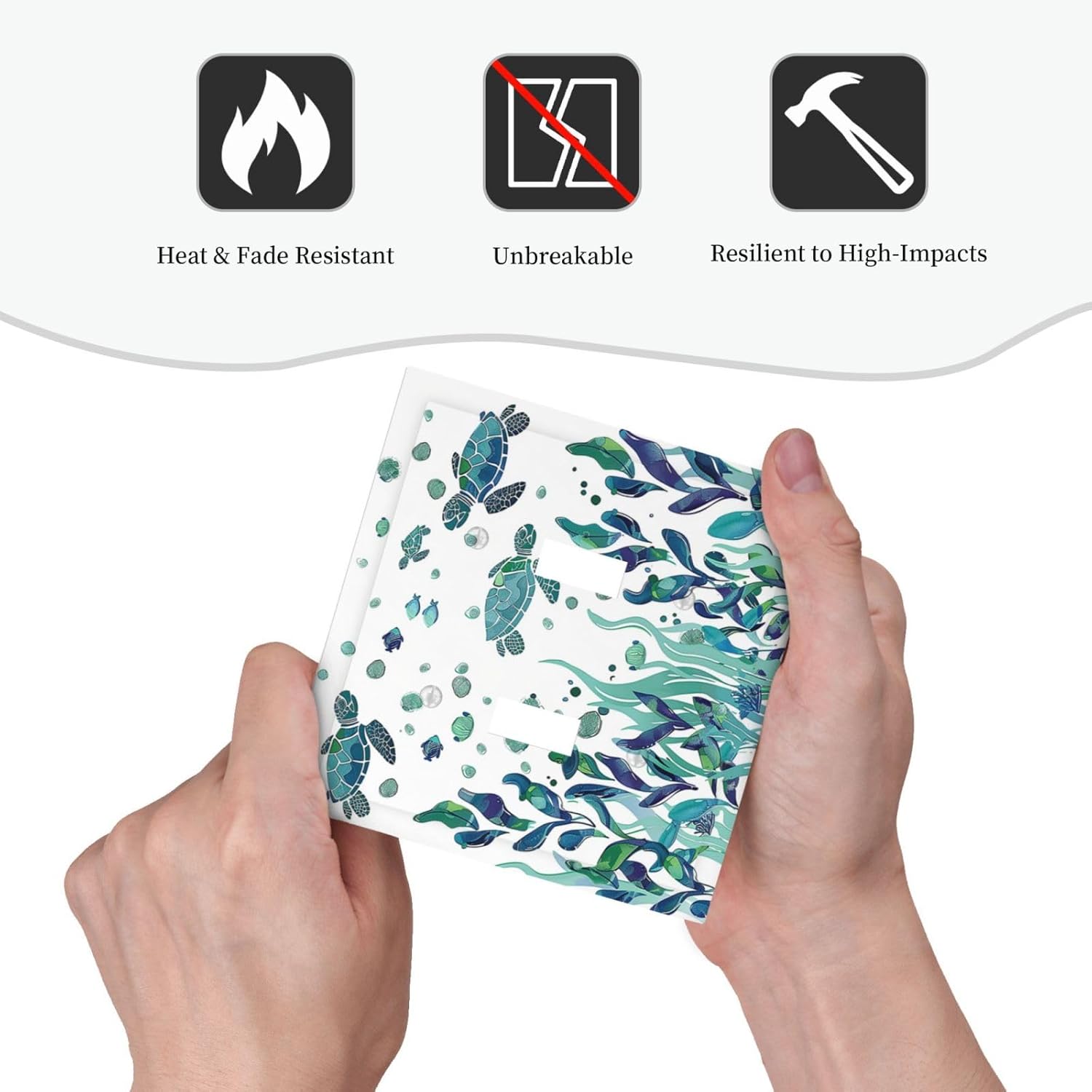 Decorative Switch Plates Vibrant Turtle Seagrass Watercolor Painting 2 Gang Double Toggle Outlet Light Switch Cover Wall Plate Electrical Faceplate for Bathroom living Room Decor