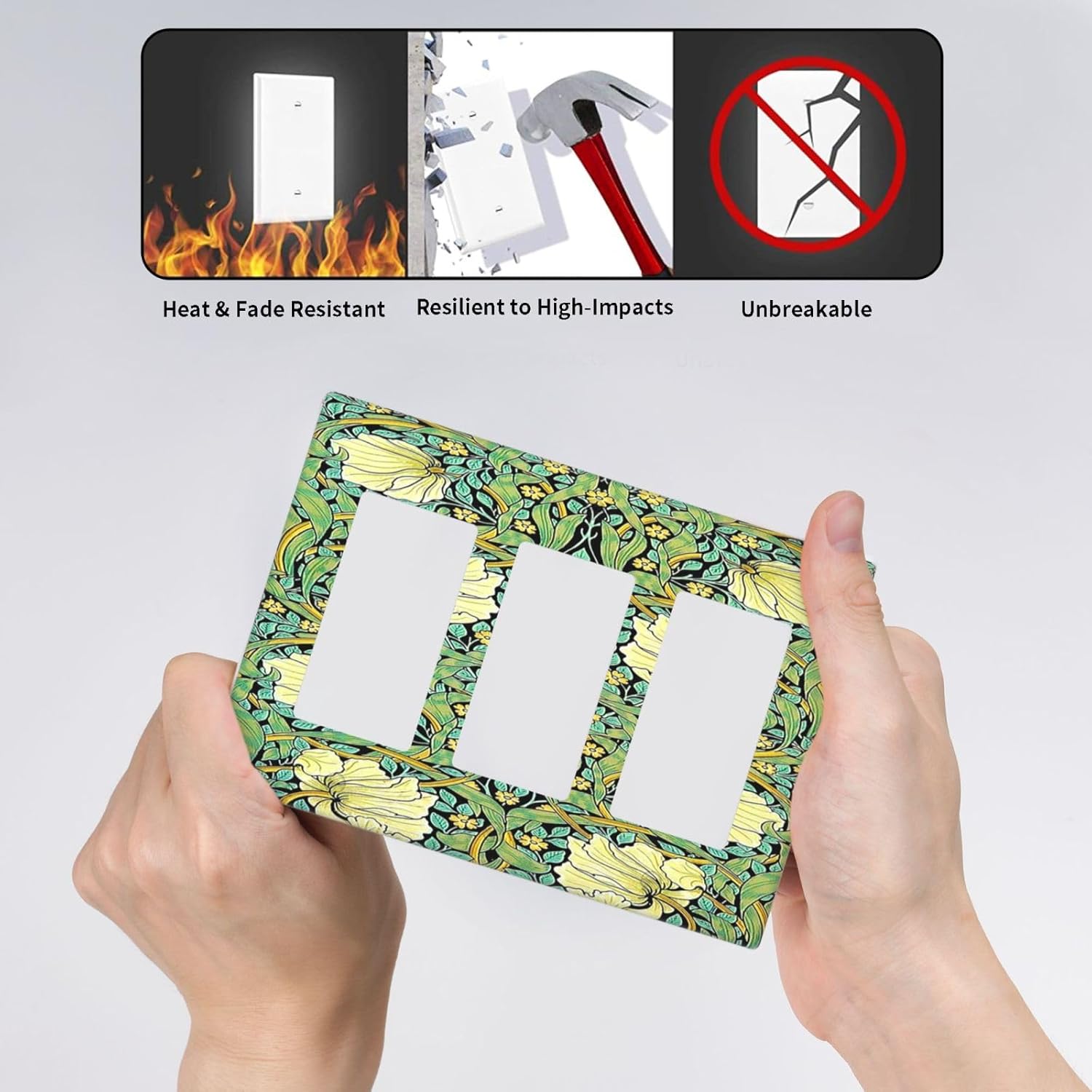 Light Switch Covers William Morris Vintage Floral Yellow Flowers Green Leaf 3 Gang Rocker Electrical GFCI Decorative Triple Outlet Wall Plate Cover Switchplate for Bedroom living Room Decor