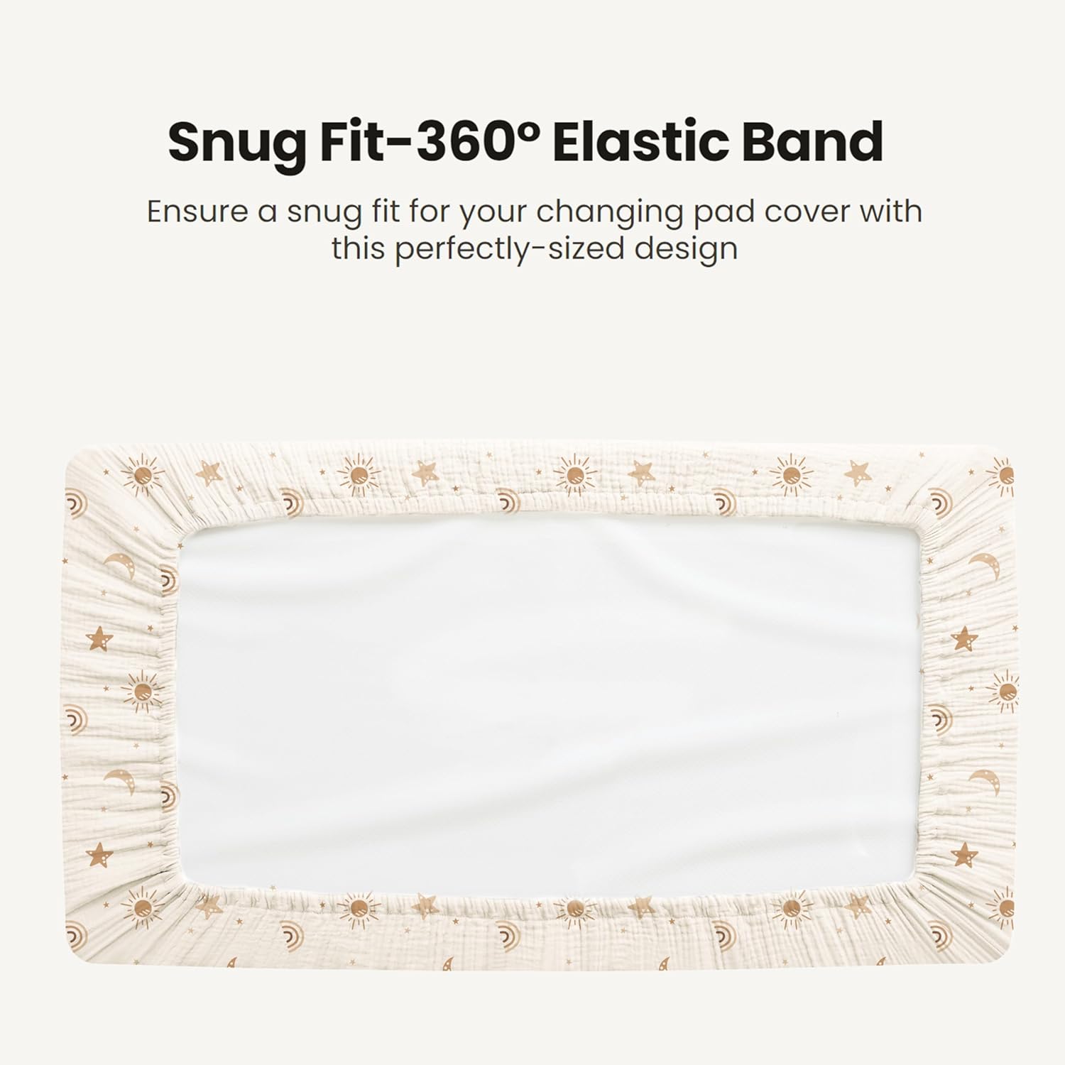 - Snug Fit: Our muslin changing pad cover measures 32β x 16βand features a fully encased 360-degree elastic. This design ensures a snug and secure fit on your changing pad. Say goodbye to slipping covers during diaper changes!