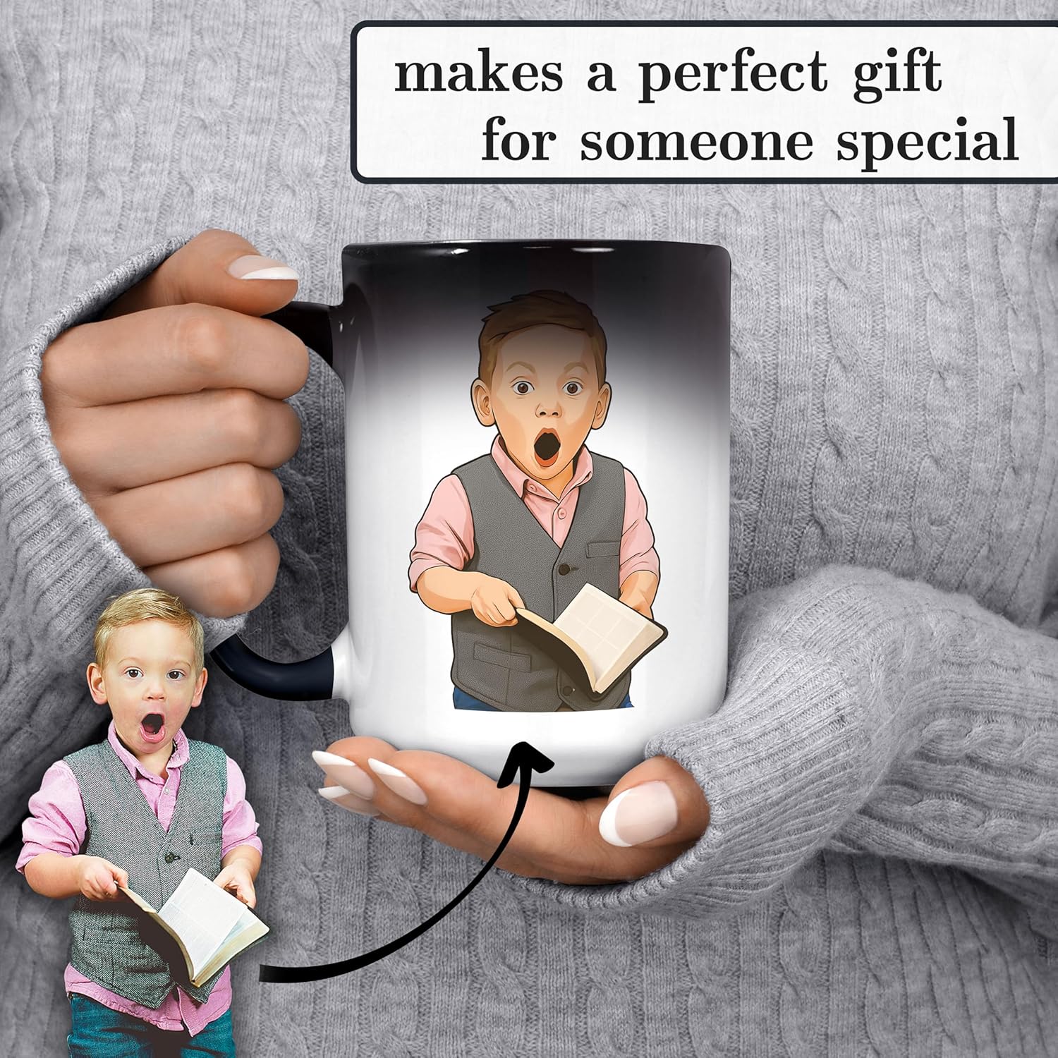 Personalized Coffee Mug, Custom Drawing Portrait Gift, Funny Customized Coffee Gift for Men & Women, Custom Mugs with Pictures, Black - Color Changing 15oz Father's Day Mug