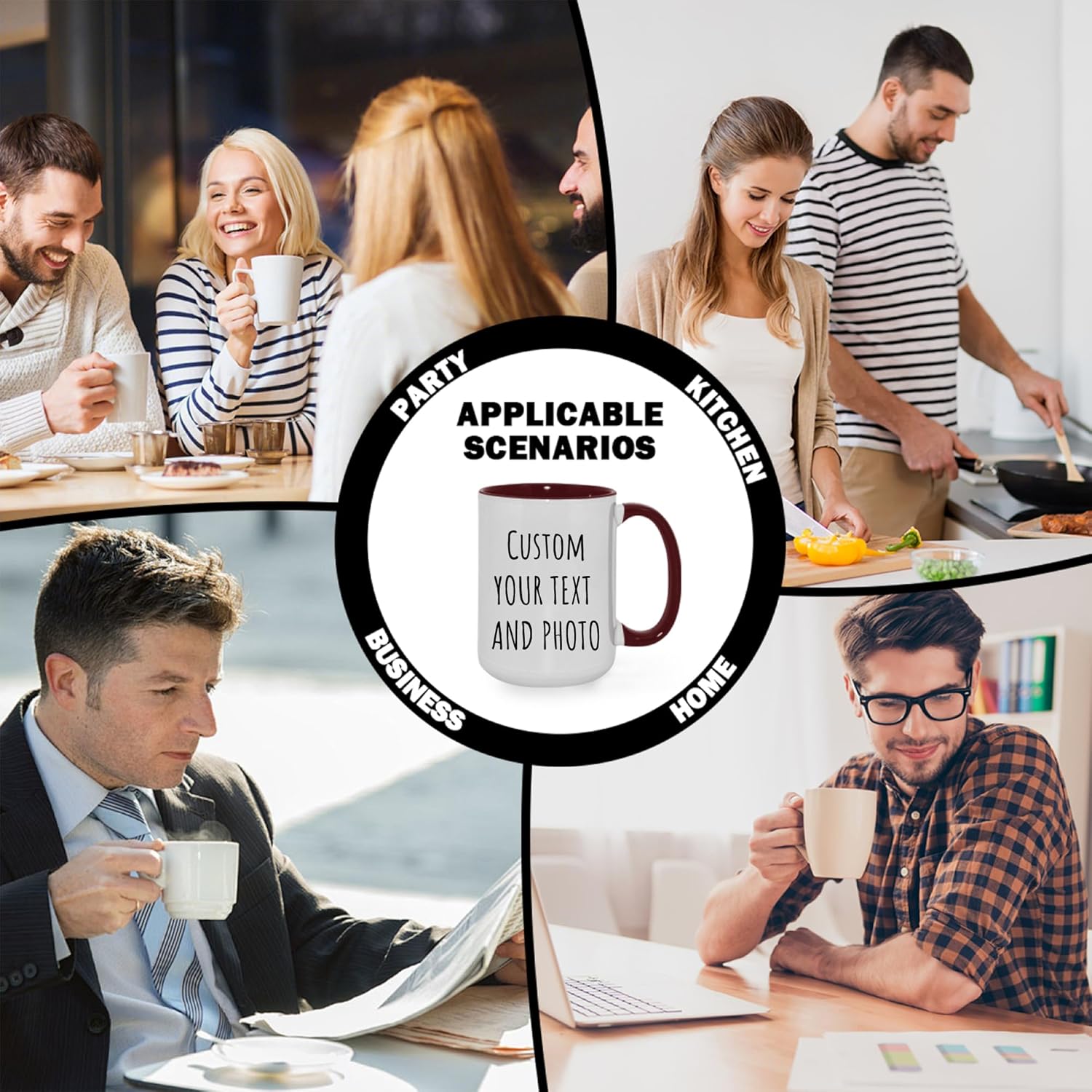 Custom Mug Upload Your Picture Personalized Coffee Mug with Photo Text Name Customized Cup Unique Ideas Gifts for Men Women Mom Dad Girlfriend Boyfriend Friend Family (Dark Red, 11oz)